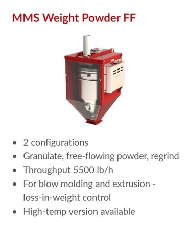The MHBS is a hybrid solution developed to help manufacturers who want to improve their shot-to-shot blending accuracy while maintaining quick batch production for high throughput applications. It stands out on the market due to its innovative combination of gravimetric blending and gravimetric inline feeding, setting new standards for precision and accuracy in the blending industry.